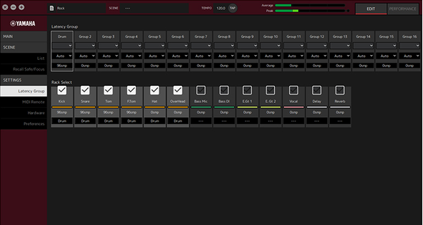 The Latency Group field on the VST Rack lets you group together specified plug-ins and synchronize the latencies of the racks within each group. When using the Auto settings, the rack with the maximum latency within a group is shown; when using the Manual settings, you can input a numeric value by double-clicking.