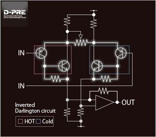 - “D-PRE” mic preamps with an inverted Darlington circuit