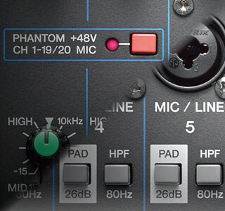 With phantom power, MG Series consoles allow you to take full advantage of the greater frequency response and high sound quality of condenser microphones. The input channel with PAD switch accepts MIC to line level of inputs, PAD Switch attenuates high input signals that often accompany mic'ed instruments during performance, avoiding the clippingthat can seriously affect your mix.