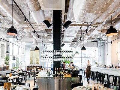 Located on a tree-lined avenue, restaurant Usine adds a touch of French industrial flair to the heart of Stockholm’s business district. Featuring a bistro, Tapas bar, café/takeaway and conference facilities, a zoned Yamaha audio system blends seamlessly with the venue’s aesthetics.