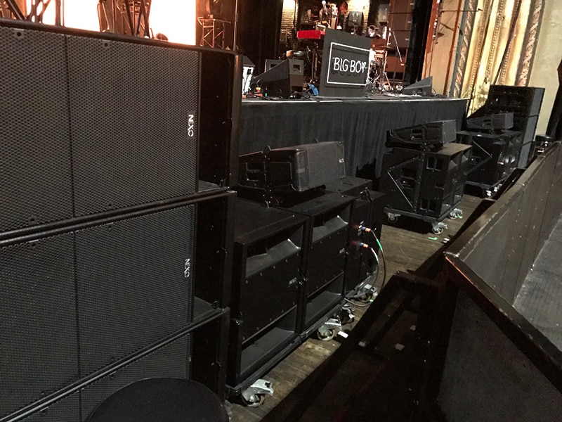 Vladimir Coulibre is the engineer for the band Caravan Palace who performed at the Metropolis during the Festival. “As it is for most of our tour dates, we loaded in day of show, and more specifically in North America, we arrive at venues around 3:00 pm, so our time is precious,” states Coulibre. “Generally, I divide my time in three steps. First step is to tune the main PA to adjust to Caravan Palace’s music, the second step is on stage to check the wedges’ polarity (both low and high section), EQ by voice and line check, and the last step is a very quick sound check with the musicians. At the Metropolis, Mark Rush from Yamaha worked with me to try several different set ups of the NEXO M28 + B112 flown and subs on the floor. We work on both the Dolby Lake and NEXO Nemo software; Dolby for time alignment and EQ, and Nemo for presets.