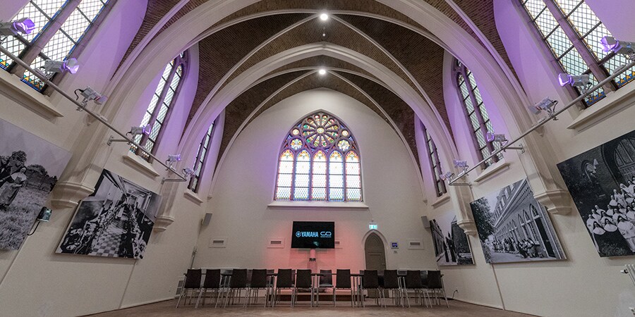 The AV facilities were designed and installed by Dennis van der Vleuten, of Oisterwijk-based Klundert Audiovisual. As is often the case, the technical infrastructure is complex, but its operation needs to be very clear and straightforward. Yamaha audio systems are the ideal solution for these needs, here covering four main areas; the foyer, restaurant, Kerkzaal (Church Room) and Kapittelzaal (Chapter Room).