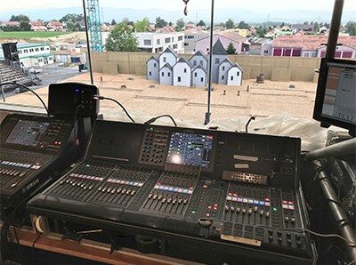 At Front of House, Bernard Amaudruz was using a CL5 to mix the 64 musicians, 16 wireless microphones for the principal singers and the main PA mix, with a QL5 sub-mixing 64 microphones used for the 200-strong choir. Dante Virtual Soundcard (DVS) was used in both consoles for eight tracks of playback - this included including sound effects, additional music, narration and a click track for the musicians.