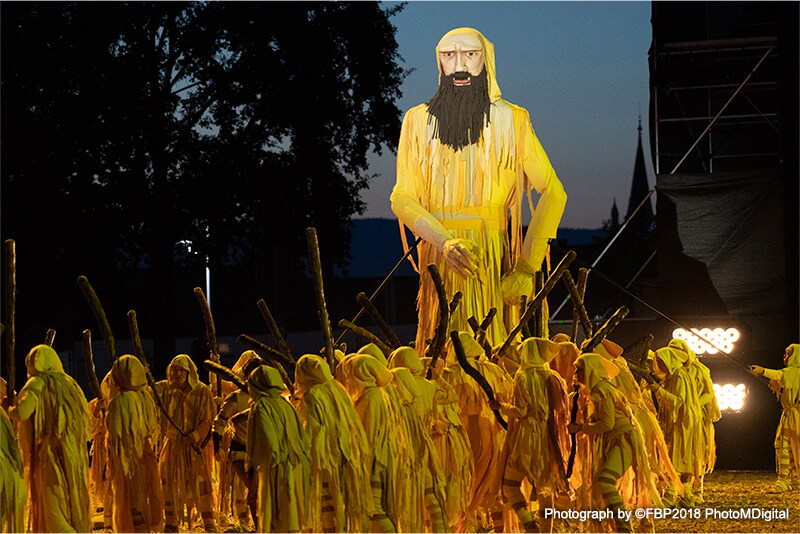 Fête du Blé et du Pain took place from 15th - 28th August, with the ten, two-hour performances of Solstices transforming what is normally a large parking area into a giant theatre set, complete with scenery village, windmills, fields and a large temporary grandstand for the audience. Drawing inspiration from real events, the epic production celebrated the strong historic bond between the people and the land of the region.