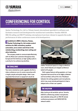 Syntec Technology Co. Ltd is a Taiwan-based, international specialist in software and hardware research and development for machine tool controllers. Yamaha ADECIA RM-CG ceiling and RM-TT tabletop microphones have been chosen to upgrade the audio performance of video conference rooms at its headquarters.
