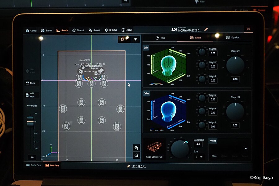 “Felismertem a Haas effekt fontosságát amikor elkezdtem dolgozni az immersive audio rendszerrel,” nyilatkozta Ikeda. “Az L-R rendszer késleltetésével az élő hang először AFC Image rendszerbe kerül.”