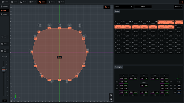 Yamaha immersive systems provide broad support that covers everything from content production to playback. The space conversion feature in AFC Image, for example, makes it possible to reproduce 5.1 channel content created using a DAW via a live sound system, easily matching playback to the venue and live sound system speaker layout. Working with NS-1 simulation software and a range of outboard equipment, this technology can deliver the creator’s content and intent in a wide range of real-world environments.