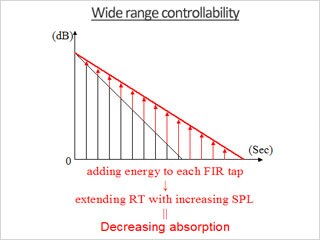 AFC uses an FIR filter in the feedback loop which provides one of the controls of the AFC enhancement process. For example, by adjusting the gain of the FIR taps, the system will adjust the energy added back to the room in the feedback loop, changing the effective absorption of the room / system and resulting RT.