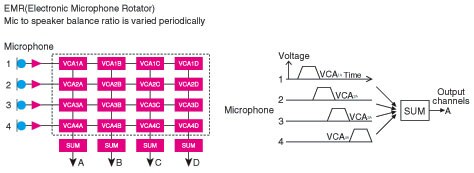 Since AFC utilizes acoustical feedback, it is essential to prevent coloration problems caused by a closed loop condition and maintain a stable system. In order to ensure controlled loop gain and a sufficient margin against instability, AFC implements a special patented technique called Electronic Microphone Rotator (EMR).