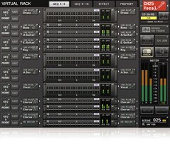 The CL consoles also feature a GEQ rack that allows graphic EQ to be inserted into the output buses as required for room equalization and other functions. Up to 16 31-band GEQ units can be mounted in the rack for simultaneous use, and those GEQ units can be individually switched to Flex15GEQ mode, effectively providing two EQ channels that allow up to 15 bands to be used at a time. With a full rack of GEQ units all functioning in Flex15GEQ mode, you have a total of 32 GEQ channels for extensive equalization capacity.