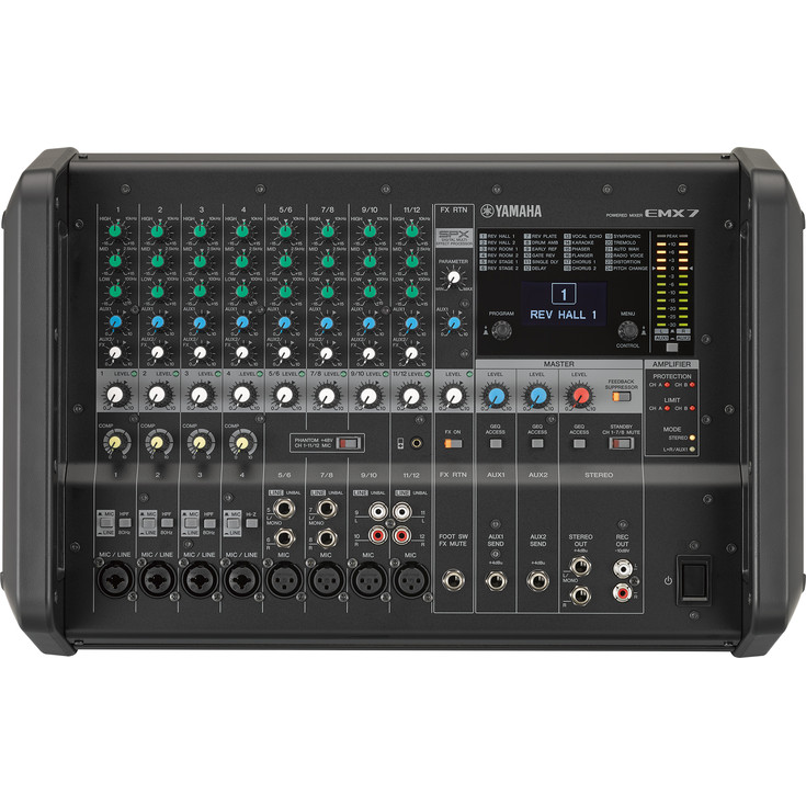 Few things make a live performance or speaking engagement take a negative turn like the sudden, uncomfortable, and often embarrassing howling of unwanted feedback. EMX7/5 come equipped with a Feedback Suppressor that utilizes a unique Yamaha digital technology to instantly eliminate annoying feedback with the single switch of a button, which utilizes a seven-band notch filter.