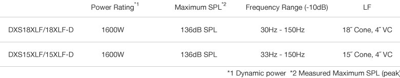 • Compatible Speakers: DXS18XLF/18XLF-D, DXS18XLFW/18XLF-DW, CXS18XLF, CXS18XLFW