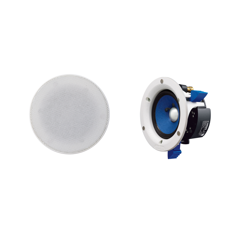 A 6-1/2" coaxial ceiling speaker with cone woofer, fluid-cooled soft-dome swivel tweeter, 110W power handling, horn-shaped acoustic baffle and thin, light grille