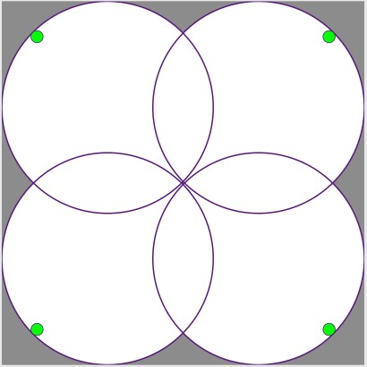 図中の白い円はメインスピーカー1台でカバーできる拡声範囲(カバーエリア)を示しています。目安として、この円の中にゲストが収まっていると想定どおりにBGMを届けることができます。