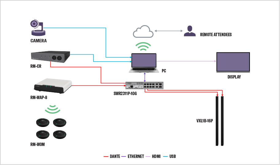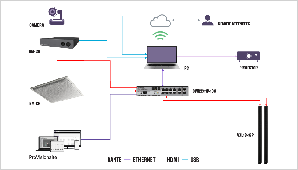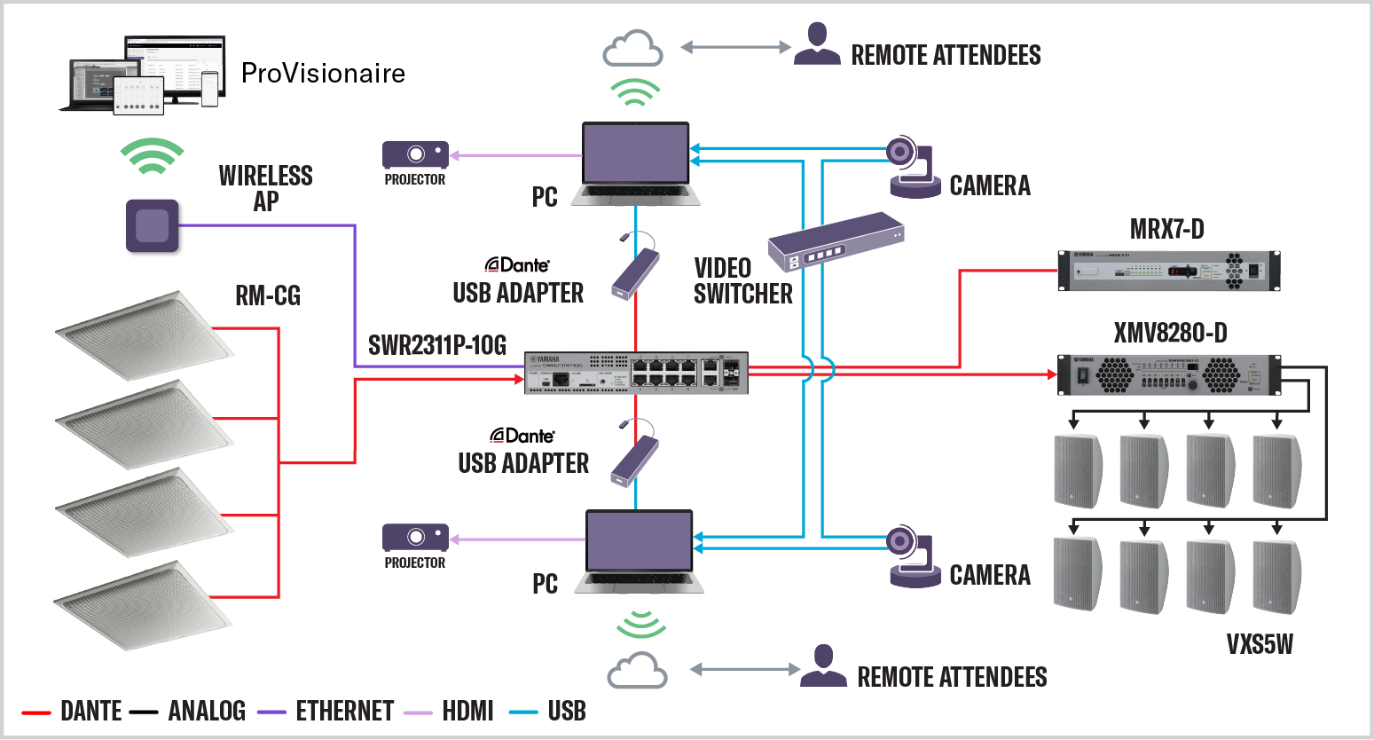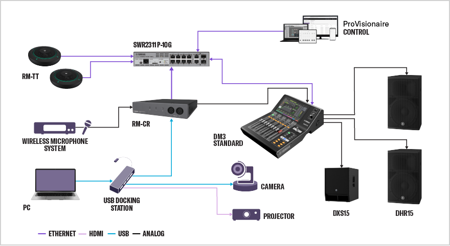 Constructing a system centered on a Dante-compatible mixer also allows flexible support for venues such as auditoriums. Then choosing speakers such as the DHR series - you can benefit from both high sound quality and powerful output, with optimal coverage. The system is kept simple, but the performance remains high.