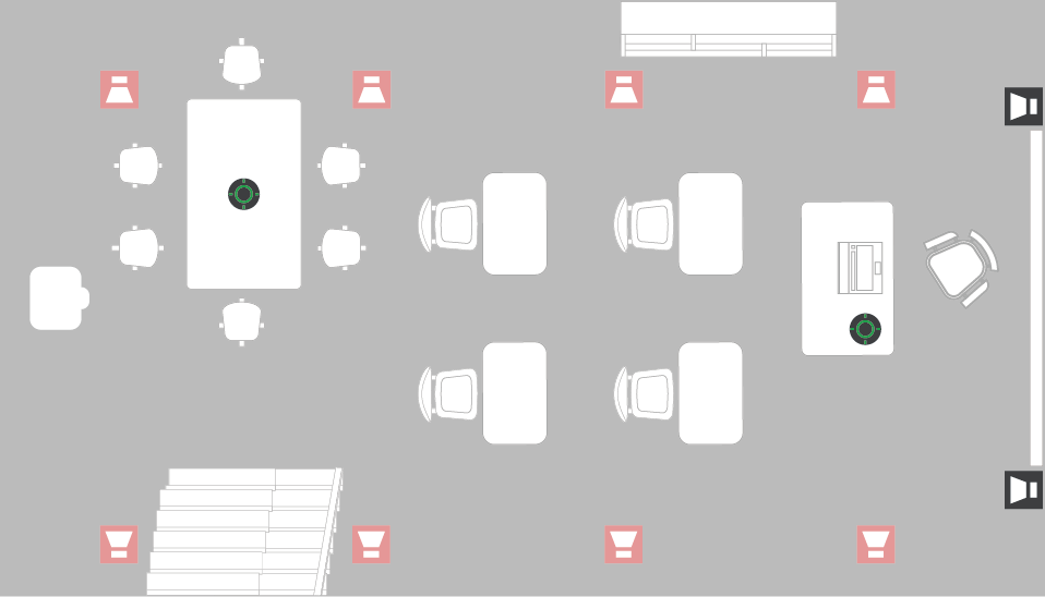 Multi-purpose rooms that occasionally host spontaneous lectures or meetings are ideally equipped with a combined ADECIA Ceiling and Tabletop Solution. A custom designed amplifier and speaker system then provide clarity and transparency without distraction.