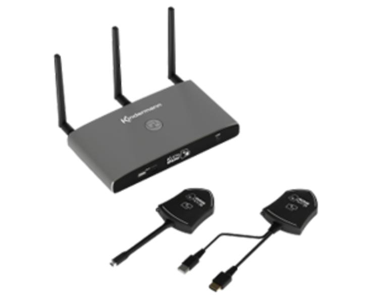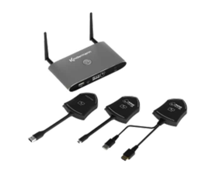 Kindermann KLICK&SHOW meets all the requirements of "new work". Easy to use - compatible with all common devices and operating systems - uniquely universal - can be used via transmitter, software client, app or natively via AirPlay.