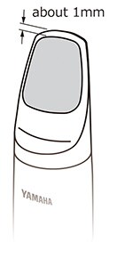2. Attach to a position about 1mm from the tip of the mouthpiece. Hold the patch down so that air does not get between the patch and the mouthpiece.