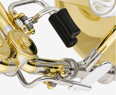 The first detachable hand rest ever to be provided in a custom bass trombone significantly reduces strain on the player’s hand fingers. This allows a steadier hold on the instrument, so the player can concentrate more fully on the music.