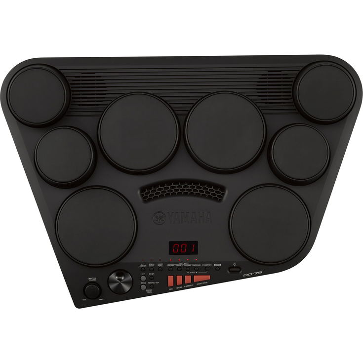 DD-75 is a digital drum kit with eight touch-sensitive pads and two foot pedals. High quality drum and wide variety of percussion sounds from all over the world are mixed with orchestra voices to provide a wide range of musical opportunities. AUX IN jack lets you connect and MP3 player and play along with your favorite music.
