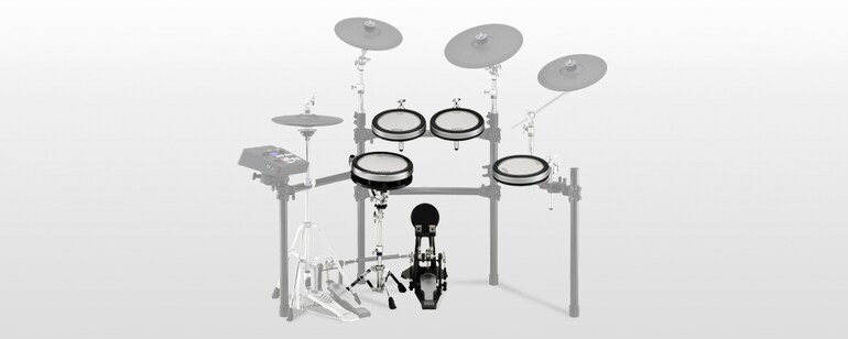 Include;XP100SD (Open & Closed rimshot capable 10-inch DTX-PAD for snare) x 1XP80 (Open & Closed rimshot capable 8-inch DTX-PAD for toms) x 3KP65 (Kick Pad) x 1SS662 (Snare drum stand) x 1♦ Standard-equipped on the following DTX drums: DTX750K