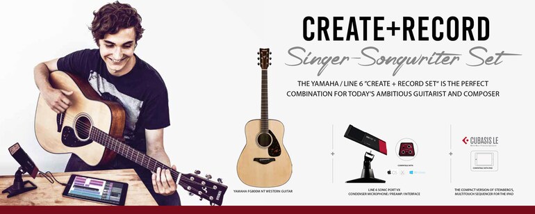 The Yamaha / Line 6 Singer Songwriter pack is the perfect combination for today’s ambitious guitarist and composer. Featuring the Yamaha FG800M, an affordable guitar with simple and traditional looks and outstanding quality, and the Line 6 Sonic Port VX: the anywhere, everywhere audio interface with built-in mics.