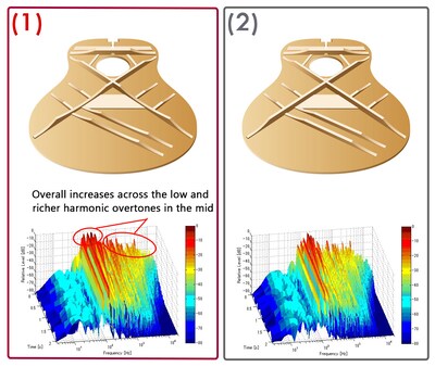 A new FG has louder and stronger sound in the low- to mid-ranges, thanks to cutting-edge acoustic analysis technology developed by the Yamaha R&D Division.Yamaha’s engineers have achieved this sound by utilizing analysis and simulation to arrive at the best bracing design without depending on tradition or guesswork.This analysis led to the development of the new scalloped bracing pattern, a new and ideal acoustic structure that maintains the durability of the top board while bringing out the most sound the Yamaha FG has to offer.