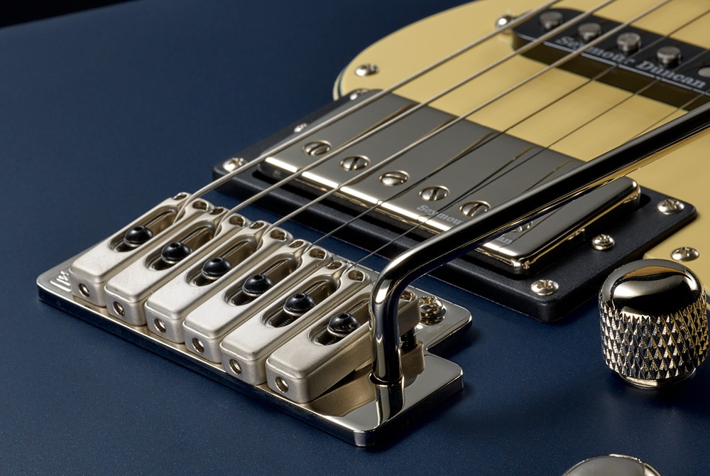 Closeup of Pacifica Standard Plus showcasing Gotoh two-point tremolo bridge.