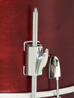 The claw hooks feature the same traditional design that is highly regarded in marching bass drum models. The tops of the tuning bolts do not protrude above the top of the hoop, preventing contact while playing and allowing the player to concentrate more fully on the performance.