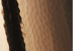 Specially designed hammering machines faithfully simulate the hand hammering process while eliminating the unavoidable inconsistencies of handwork. The goal was not only to improve efficiency, but more importantly to recreate the technique of master craftsmen. The result is bowls that exude hand-made warmth.