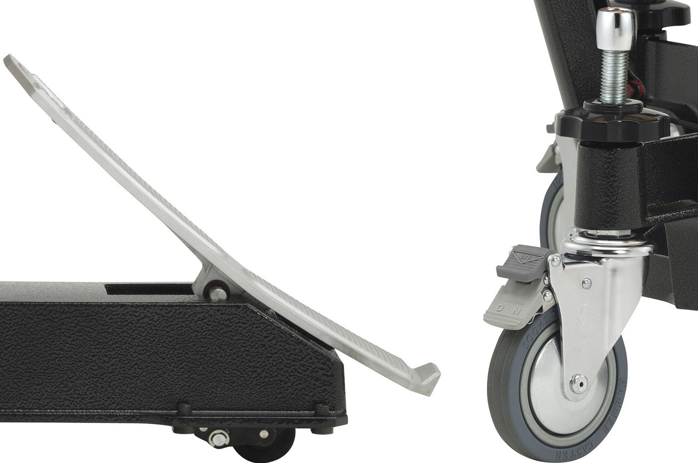 Left: Main caster lock, Right: Pedal caster auxiliary brake