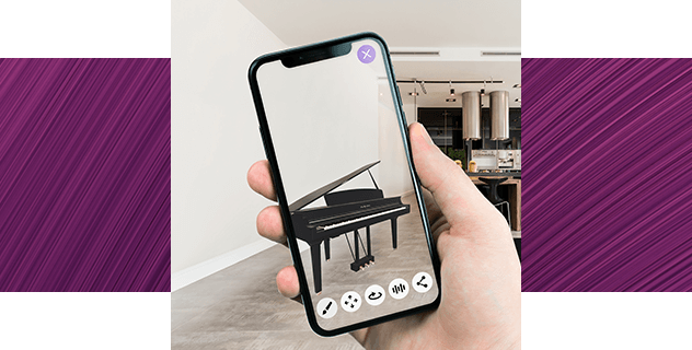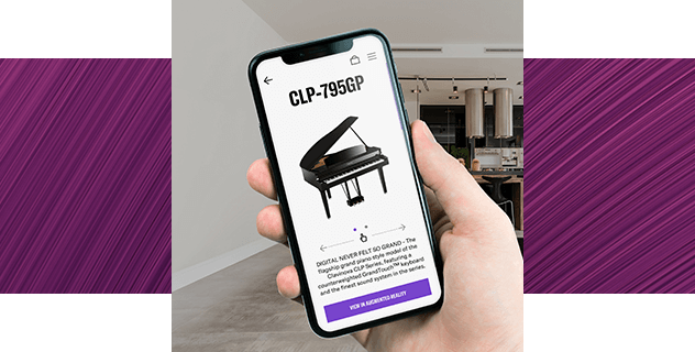 If you start the Clavinova Space App you can see the range of Clavinova CLP/CVP pianos, choose the one, which excites you most and place it into your room. You can change the model, the colour and the angles. It feels hyper realistic.