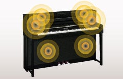 The sound of a Clavinova is calibrated in fine detail, with speaker positioning and body materials checked to ensure that the entire instrument resonates optimally. To create a sound field that is very close to that of a grand piano, the Clavinova features tone escapements in several locations throughout the body that allow the sound from the speakers to be projected to the listener without being trapped inside the instrument.