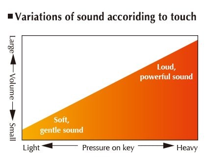 For instance, one of the major characteristics of a grand piano is the wide change in key touch, from playing soft to striking the keys hard. Grand pianos respond to different ways of playing with different key touches—the keys move lightly when played softly, and the keys respond firmly when played strongly.