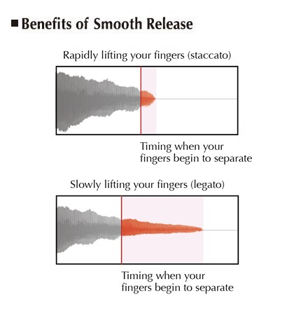 Sound in an acoustic piano attenuates over a long time. Pianists can change the volume of the sound—as well as its dynamics—to achieve both mellow and bright tones by simply changing the pressure they apply to the keys.