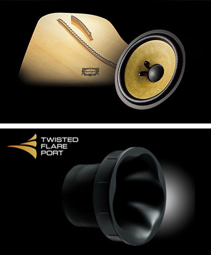 Speaker innovations by Yamaha include Spruce Cones and Twisted Flare Ports