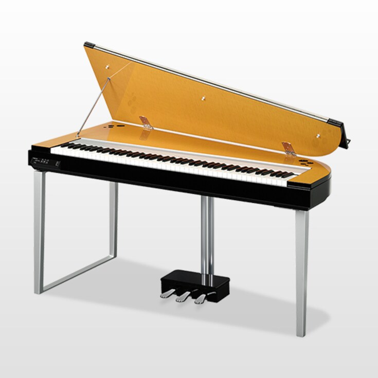 True piano sound in a modern, attractive grand piano shape cabinet.