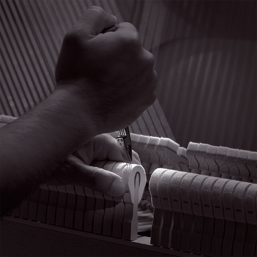 There are roughly 8,000 parts used in the construction of piano, many of which are made from natural materials having distinct differences and their own individual characteristics. In order to maximize the characteristics of each material and create the ideal sound, Yamaha conducts intensive research on each and every one of them. The artistry that goes into each individual piano is an exquisitely delicate balance between the traditional craftsmanship that maximizes those characteristics and the state-of-the-art production techniques that ensure consistent accuracy.