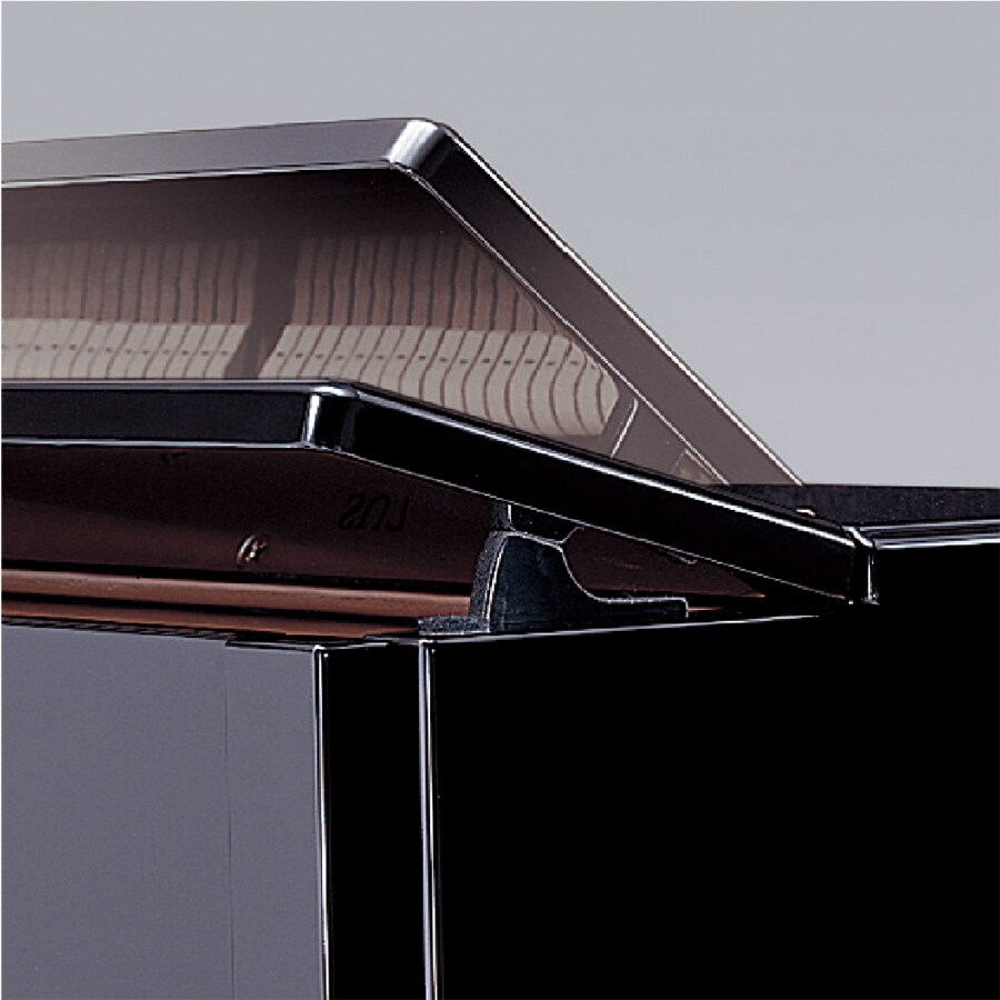 In order for the player to fully sense this rich ambience and enjoy the performance, the SU series uses tone escapements for the sound to easily reach the ear. These are gaps that release sound from inside the piano, located at the top of the lower front plate (below the keyboard) and the back of the keyboard lid. Moreover, by adopting a top support that allows the lid of the piano to be opened and closed in a double-folding type (the SU7 has two stages), a truly natural sound—much like that of a grand piano—has been realized.