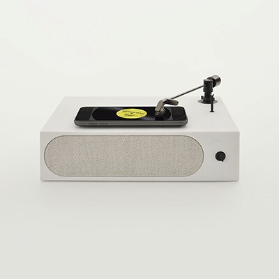 TurnT: A device inspired by the record player (turntable), designed to be used in conjunction with an app to listen to music. The smartphone screen works as a kind of magical record. Place the stylus on it and it starts playing.