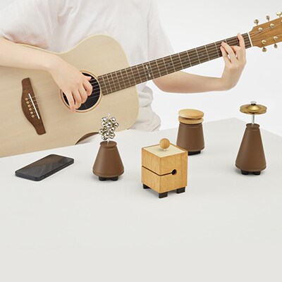 RhythmBot: A metronome consisting of four small robots that play acoustic sounds. They can be linked to your smartphone to play rhythms to the tempo you are playing, accompanying you in a live jam session.
