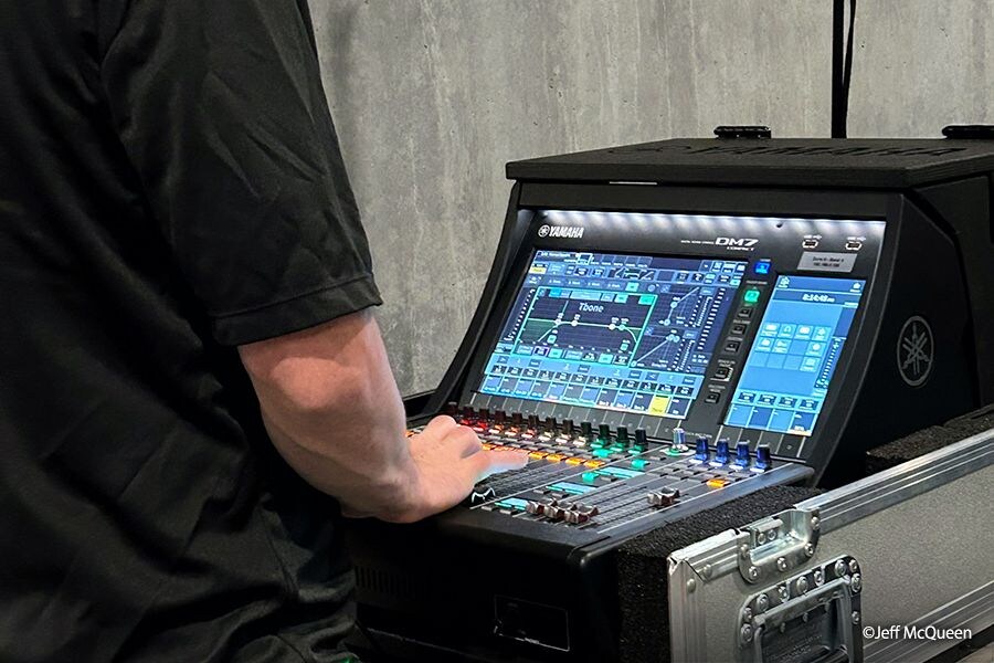 The complexity of the event demanded a flexible, rock - solid system. Yamaha’s Dante - enabled infrastructure formed the backbone, with 11 consoles deployed across the venue, including (2) DM7-EX, (4) DM7-C and (5) DM3 systems, each acted as a local mix point and I/O hub.