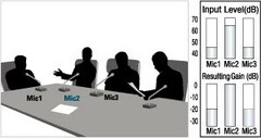 When one person is speaking the gain of the corre sponding microphoneis instantaneously raised to 0 dB while the gain of t he o ther t wo m icrophones is lowered. The same occurs in any channel when only one person is speaking.