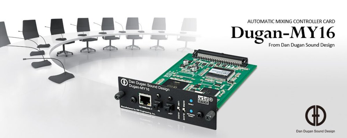 The Dugan-MY16 is an automatic mixing card for Yamaha digital mixers that employs advanced technology from Dan Dugan Sound Design. When multiple microphone inputs need to be mixed without a script or pre-planned gain changes, the Dugan-MY16 can automatically optimize gain distribution over multiple faders so that the engineer is free to concentrate on the quality of the mix, rather than being chained to the faders. It’s almost like having a talented assistant engineer keeping track of fader levels, lightening the overall workload and maximizing efficiency.[About Dan Dugan Sound Design]Dan Dugan Sound Design specializes in automatic mixing technology, with automatic mixer inventor Mr. Dan Dugan at the helm. Initially licensed by the Altec company for their automatic mixers, the unique algorithm of the Dugan Speech System™ is now being made available in high-performance automatic mixing systems under the Dan Dugan Sound Design brand. Dan Dugan products have become standards in broadcast studios, conferences, and houses of worship in the United States, prized for their outstanding performance and reliability.